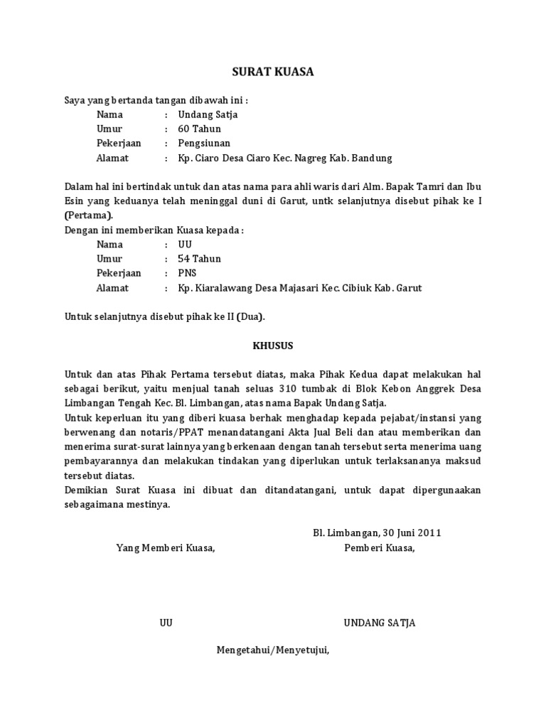 Jangan sampai bahasamu menimbulkan polemik atau bahkan multitafsir. Dalam jual beli semacam ini ada beberapa hal yang perlu kita ketahui. Ketika anda ingin menjual sebidang tanah, namun lokasinya berada jauh dari domisili saat ini. Surat kuasa dibuat oleh seseorang yang memiliki kesibukan atau halangan tertentu dan diberikan kepada orang lain yang terpercaya dikarenakan yang bersangkutan tidak dapat melakukan suatu hal. Sebelum membuat surat kuasa, ada baiknya ketahui contoh surat kuasa yang baik dan benar terlebih dahulu.
