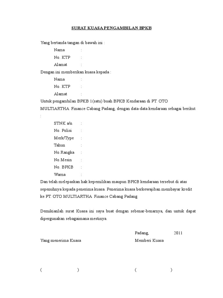 Karena surat kuasa merupakan suatu bukti yang kuat agar dokumen bpkb bisa diambil oleh orang yang sebelum kita membahas cara menulis surat kuasa pengambilan bpkb untuk kendaraan motor atau mobil, di bawah ini adalah syarat pengambilan. Contoh surat pengambilan bpkb di adira finance. Bagaimana cara membuat surat kuasa pengambilan bpkb motor atau mobil yang benar? Download file blangko contoh surat kuasa pengambilan bpkb motor dan mobil dalam format word gratis tinggal edit untuk berbagai leasing di indonesia. Berikut ini adalah contoh surat kuasa pemgambilan bpkb yang dapat kalian download dan edit sesuai kebutuhan anda. Contoh surat kuasa untuk pengambilan bpkb motor cicilan. Harga sepeda motor memang mahal, makanya tak jarang orang. Dari segi bidang maupun fungsi pada bentuk surat. 9 contoh surat kuasa pengambilan bpkb surat kuasa pengambilan bpkb. Mengapa surat kuasa itu penting? Contoh surat kuasa yang benar dan turorial lengkap cara membuatnya. Bingung dengan cara menulis surat kuasa untuk mengambil bpkb? Surat kuasa perseorangan merupakan surat kuasa yang dibuat oleh seseorang untuk mempercayakan urusan atau kepentingan pribadi kepada orang lain.